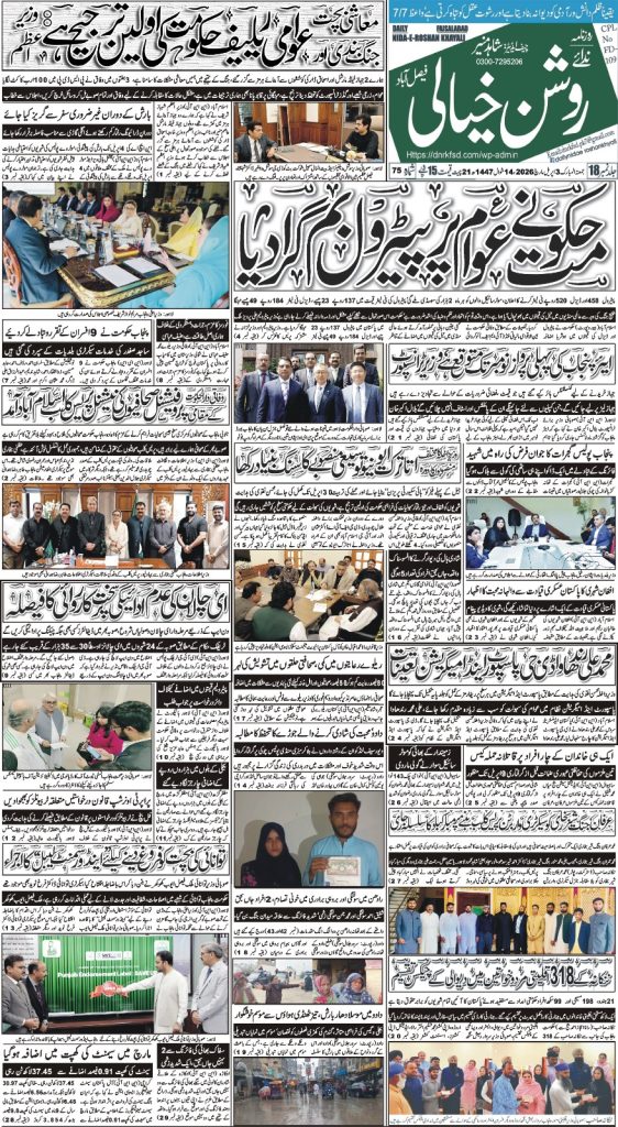 Current News Daily Nida E Roshan Khayali 3-4-2026 By admin - April 3, 2026 0 60 FacebookTwitterWhatsApp